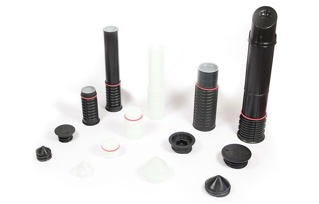 Bucșele (inserturile) pentru injectare și ridicare sunt produse din plastic prevăzute cu filet, instalate în timpul etapei de prefabricare a bolțarilor. Sunt disponibile, de asemenea, dopuri filetate pentru injectare, șaibe de etanșare pentru capac, șaibe cu expandare la apă (hidro-gonflabile) și supape de reținere (unisens) din plastic. Este disponibilă o gamă largă de bucșe cu diametre și lungimi diferite pentru a satisface cerințele proiectului.