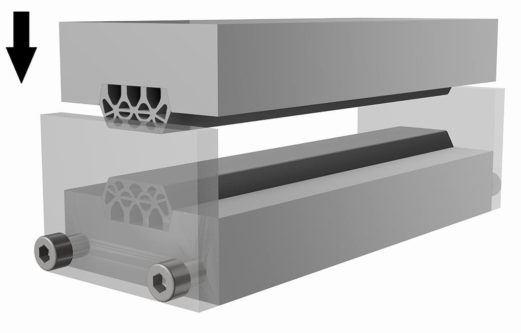 - Toate profilurile și colțurile flexibile de descărcare sunt proiectate special pentru a minimiza forțele de reacțiune și suprasarcinile transmise pe flancurile canelurii (șanțului din beton). Colțurile flexibile ale cadrelor sunt realizate în conformitate cu unghiurile și geometria fiecărui bolțar în parte.